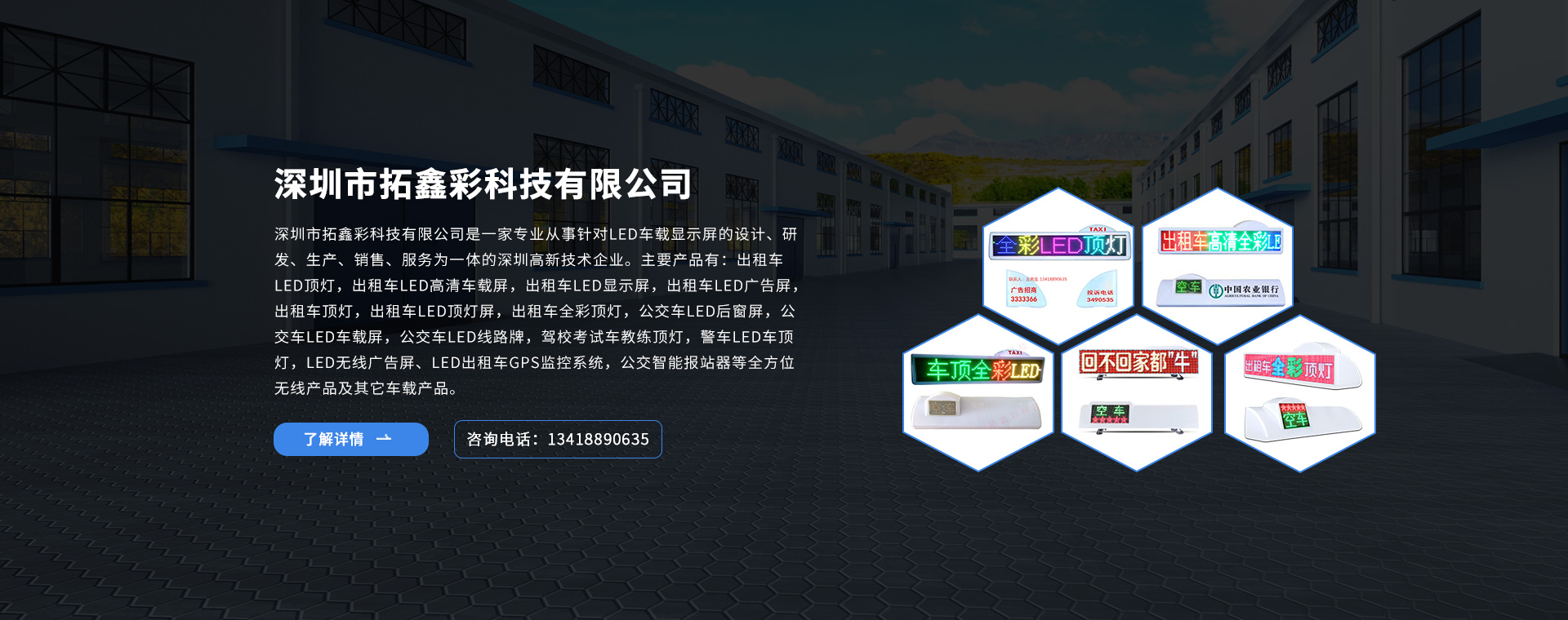 專(zhuān)業(yè)從事針對LED車(chē)載顯示屏的設計、研發(fā)、生產(chǎn)、銷(xiāo)售、服務(wù)為一體的深圳高新技術(shù)企業(yè)